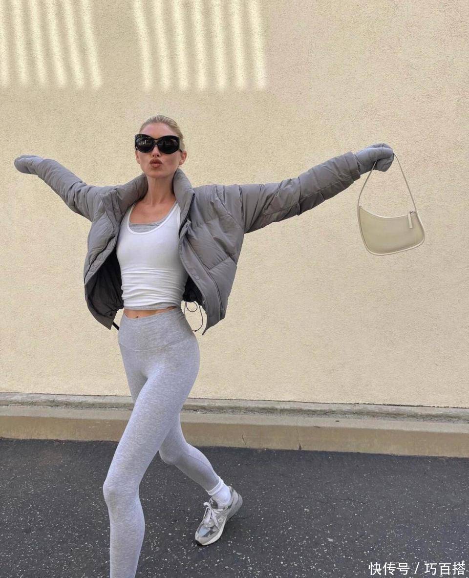 选择瑜伽裤可以搭配短款上衣露出完美腰臀比,也可以选择搭配遮住屁股的卫衣、毛衣、羽绒服,利用上松下紧的穿衣风格也能轻松赚足回头率,搭配堆堆袜衔接瑜伽裤与运动鞋,保暖又有层次,有效避免了视觉疲劳。